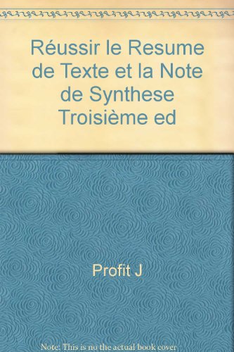 READ ONLINE. PDF Réussir le Resume de Texte et la Note de Synthese Troisième ed Download PDF. Description. Are you search for Réussir le Resume de Texte et la Note de Synthese Troisième ed PDF Free PDF? Now Online Réussir le Resume de Texte et la Note de Synthese Troisième ed PDF PDF is available on our online library.